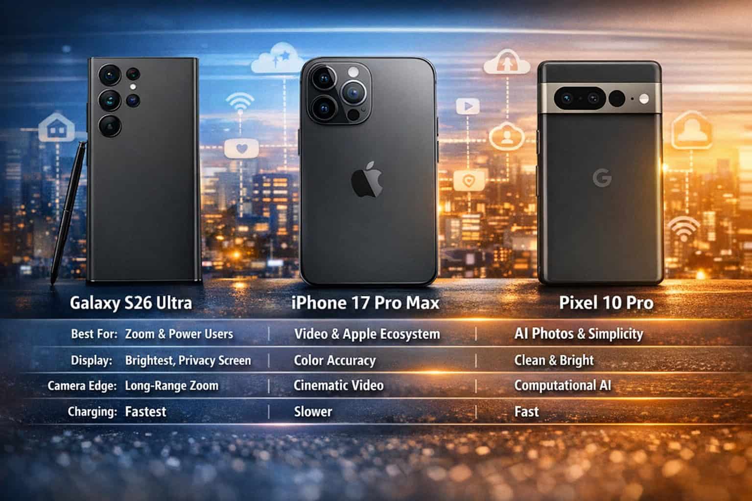 With the debut of the Samsung Galaxy S26 Ultra, Samsung is again squaring off against the Apple iPhone 17 Pro Max and the Google Pixel 10 Pro — three devices that now define the high-end mobile experience in 2026.