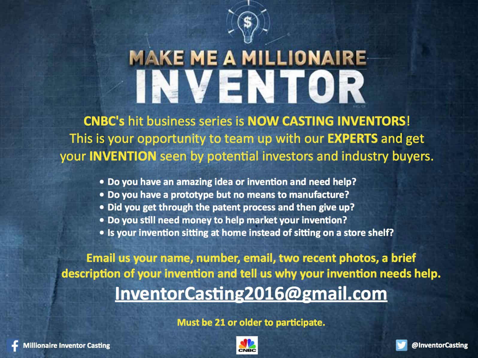 LOS ANGELES – CNBC’s Make Me A Millionaire Inventor is casting inventors of all kinds who want to team up with their experts to get their inventions seen by potential investors and industry buyers.